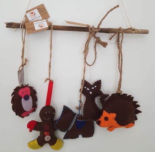 Theresa has a hand-me-down sewing machine, but prefers to stitch by hand while she listens to a true crime podcast and sips a mug of Yorkshire Tea. Her felt animals started life as Christmas Decorations, but she kept finding new ways to style them. How about using yours as a keyring or hung from the picture rail as a piece of wall art? Each one comes with a free keyring loop.