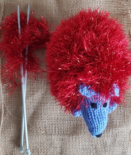 Ok, so the sparkly version of the hedgehog was originally a Christmas thing, but Jude’s got a soft spot for glitter, and there was plenty of yarn left, so she just kept on knitting them. And who wouldn’t want one of these dazzlers on their bedroom shelf? Or mantelpiece? Or pillow?